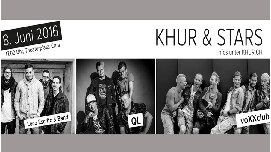 Am Mittwoch, 8. Juni 2016 findet zum ersten Mal KHUR & STARS statt. Auf dem Churer Theaterplatz, im Herzen der Bündner Hauptstadt, vermischt sich hochwertiger Latino-Pop, legendärer Mundart-Partysound mit neuer Volksmusik. Ein Abend mit Leckerbissen aus drei Musik-Genres!