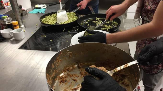 Pascal Ledergerber ist im Schuss. Mit hochrotem Gesicht und einem Lachen im Gesicht, gibt er in der Küche kurze und knappe Anweisungen. «Pfanne vom Herd nehmen», «Pfanne abwaschen», «Knöpfli fürs Supplement bereitstellen». Dazwischen hat er kurz Zeit, ein paar Fragen zu beantworten. «Viele Leute denken, dass wirklich nur - so gemein es tönt - die hinterletzten Menschen in die Gassenküche kommen. Aber das ist nicht der Fall. Hier kommen Leute her, die etwas erlebt haben und das Erlebte auf ihre Art bewältigen.» Das will er den Leuten näher bringen. Und er erklärt, dass nicht nur Randständige in die Gassenküche kommen können, sondern jeder und jede, die möchte.