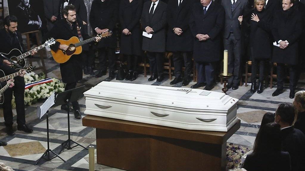 Hallydays Sarg traf in Begleitung seiner Angehörigen auf der Karibikinsel ein, wo der Rocksänger ein Anwesen hatte. Dort soll er am Montag bestattet werden.