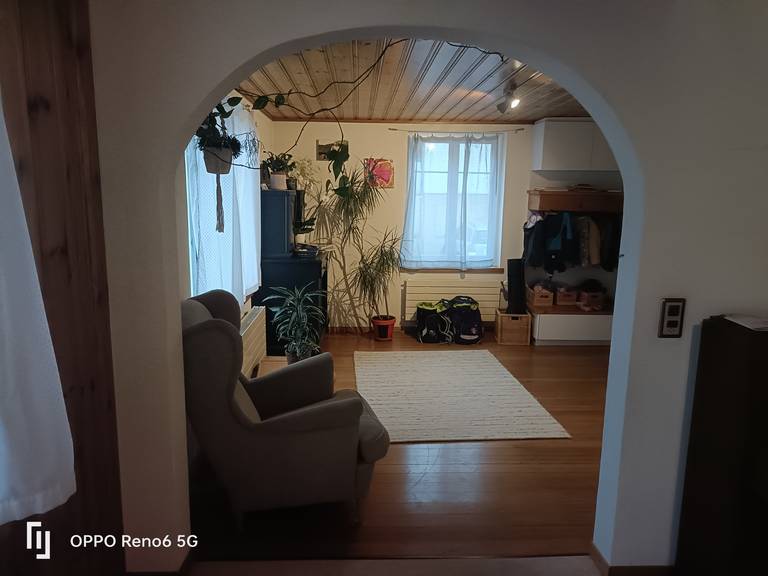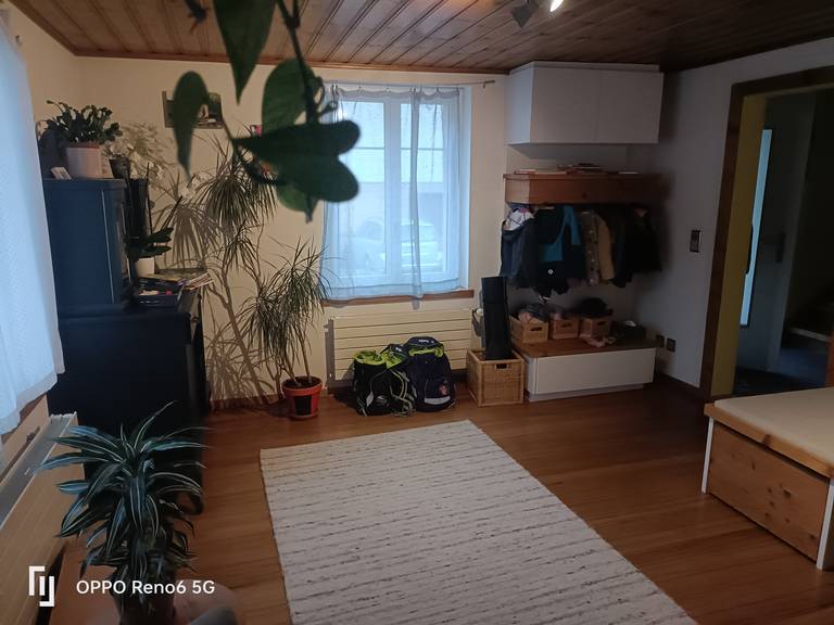 Unser buntes ,«Gerbi» Haus wird nächstes Jahr hundert Jahre alt. Es ist das Haus, das meine Grosseltern gekauft haben und in welchem meine Mutter aufgewachsen ist. Die Stube wurde vor 27 Jahren leicht saniert, als es in die Hände meiner Mutter überging. Vor sechs Jahren, als ich das Haus übernommen habe, wurden die Fenster neu ersetzt. Unsere fünfköpfige Familie hätte riesige Freude an einer Komplettsanierung und somit an einem modernen und zeitgemässeren Wohnzimmer. Der Raum ist aufgeteilt in zwei Zimmer,im Stübli rechts vom Eingang steht ein alter Kachelofen,der intakt ist und mit einer kleinen Ofenbank erweitert wurde. Das Zimmer dahinter, das mit einem offenen Rundbogen abgetrennt ist, diente zu «früheren» Zeiten als Schlafzimmer. Im vorderen Raum ist ein alter Teak Boden drin, im hinteren Zimmer ein alter Teppich, der dringend raus müsste. In beiden Räumen macht das alte Täfer die Stube zusätzlich dunkel. Eine neue Stube wäre nicht nur ein Traum, sondern auch ein tolles hundertjähriges Geburtstagsgeschenk für uns alle.