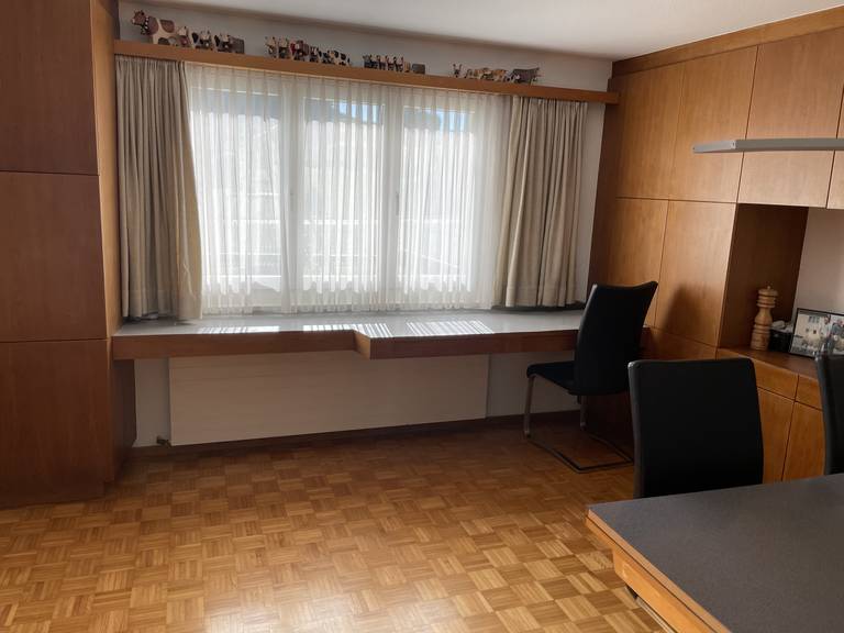 Wir wünschen uns einen Stuben Umbau da unser Boden verschieden farbig ist. Zu dem haben wir kein Platz um Geburtstage etc. zu feiern, da die vielen Einbauschränke sehr viel Platz beanspruchen. Der ganze Raum ist sehr dunkel.