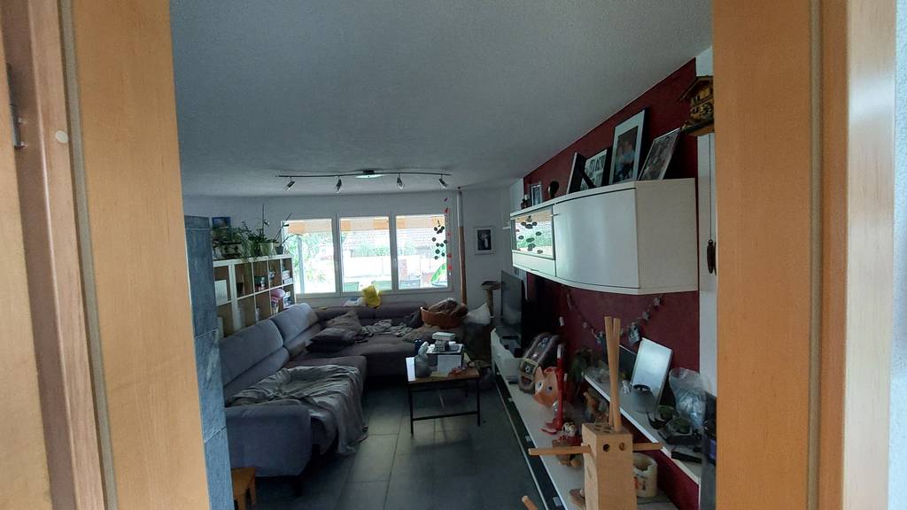 Vor Jahren entschieden wir uns für Platten, keine Ahnung was wir uns gedacht hatten. Den Boden hätten wir gerne aus Holz, das würde uns machen sehr sehr stolz. Die Wand ist rot sie gefällt uns nicht mehr, Veränderung ist gut und freut uns sehr. Vielleicht passt etwas mit Struktur, Holz oder Steine aus der Natur. Ein Platz für den Hund das wäre toll, sonst macht er das ganze Sofa voll. Manchmal ists laut das ist nicht zu leugnen, eine Trennwand würde dem vorbeugen. Und dann die Lampen die sind sehr alt, das Licht ist grell und sehr sehr kalt. Nu hoffen wir dass es euch gefällt, und uns fürs Finale auserwählt.