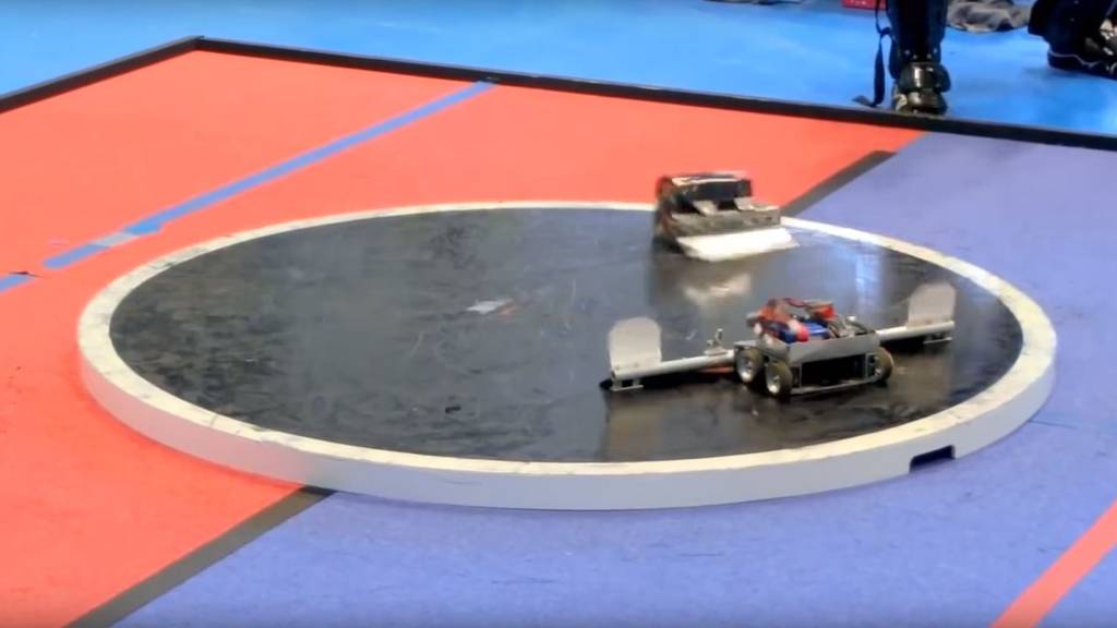 Hier kämpfen die Sumo-Roboter gegeneinander. Da fliegen gern mal die Fetzen.
